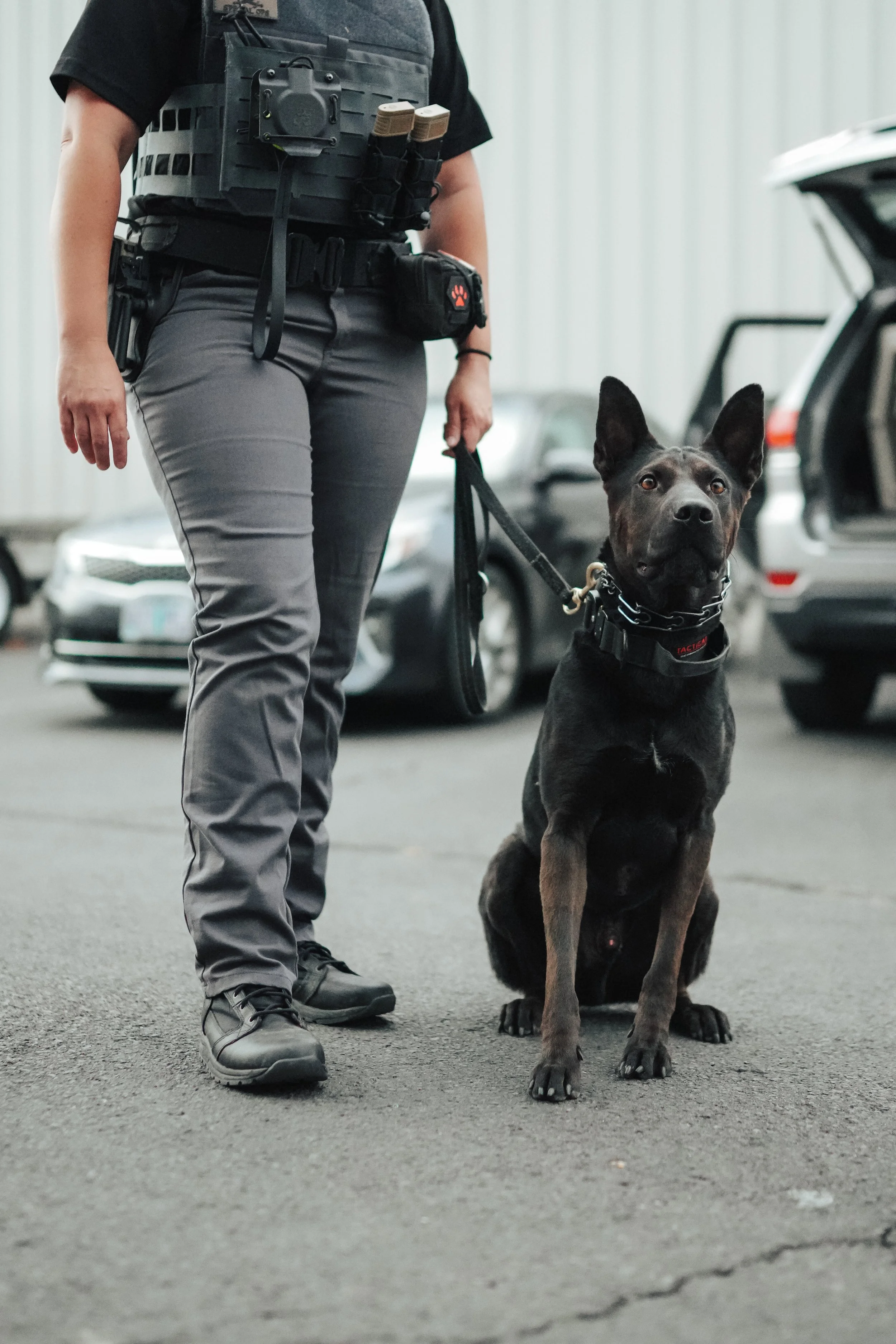 Lagom's Head of Operations and our very first detection team member! Nyx is a 4-year-old Dutch Shepherd certified in both Firearms and Narcotics (cocaine, meth, heroin, MDMA, and fentanyl)! She may look serious but is known to keep team morale high with her goofy antics.